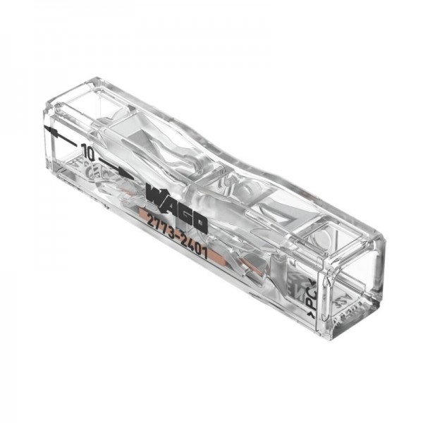 PUSH WIRE® průchozí instalační svorka; PRO PLNÉ A VÍCEDRÁTOVÉ VODIČE; Max. 4 mm2; 2 vodiče; Barva pouzdra transparentní; Transparentní kryt; Okolní teplota: max. 85 °C (T85); 4,00 mm2; TransparentníParametry 2773-2401 PUSH WIRE průchozí instalační svorka, plný vodič 0,75 … 4 mm² / laněný vodič 1,5 … 4 mm², transparentní, okolní teplota: max. 85 °C