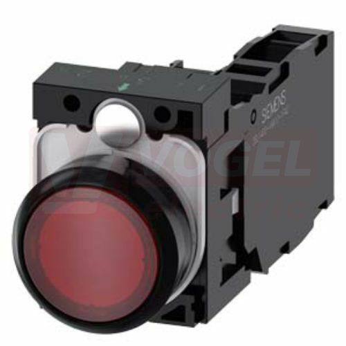 3SU1106-0AB20-1FA0 tlačítko, osvětlené, 22 mm, kulaté, plast, červená, šroubová svorka, 1 NO + 1 NC, AC230V