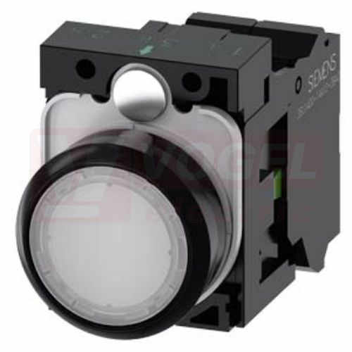 3SU1106-0AB60-3BA0 tlačítko, osvětlené, 22 mm, kulaté, plast, bílá, pružinové svorky 1 NO, AC230V
