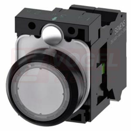 3SU1106-0AB70-3BA0 tlačítko, osvětlené, 22 mm, kulaté, plast, čirá, pružinové svorky 1 NO, AC230V