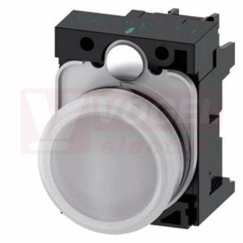 3SU1106-6AA60-1AA0 signálka 22 mm, kulatá, plast, bílá, čočka, hladká, šroubová svorka, AC230V
