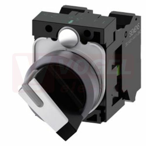 3SU1130-2BF60-3MA0 otočný spínač, prosvětlený, 22 mm, kulatý, kovový čelní kroužek, bílý, pružinové svorky, 1 NO + 1 NC