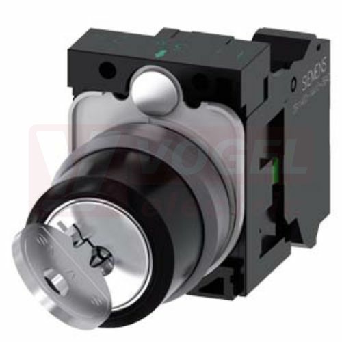 3SU1130-4BF11-3BA0 klíčový spínač RONIS, 22 mm, kulatý, kovový čelní kroužek, vytažení klíče O+I, pružinové svorky