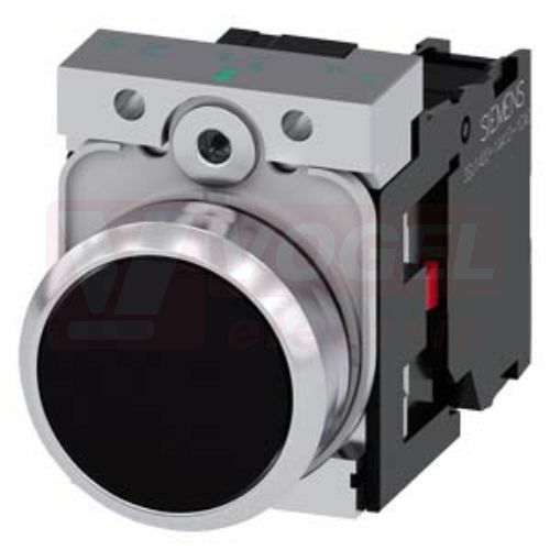 3SU1150-0AB10-1CA0 tlačítko, 22 mm, kulaté, kov, s vysokým leskem, černá barva, stiskací knoflík, s nízkým hmatníkem, 1 NC
