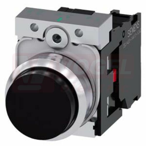 3SU1150-0BB10-1CA0 tlačítko, 22 mm, kulaté, kov, s vysokým leskem, černá barva, stiskací knoflík, s vysokým hmatníkem, 1 NC
