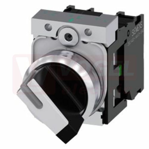 3SU1150-2BF60-3MA0 otočný spínač, prosvětlený, 22 mm, kulatý, kov, s vysokým leskem, bílý, pružinové svorky, 1 NO + 1 NC