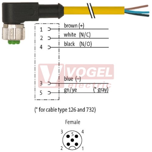 Odkazy 7000-12361-0550500 konektor M12/5-pin/zás/úhlový - kabel ŽL PUR do svařovny 5x0,34mm2 L=5,0m - volný konec