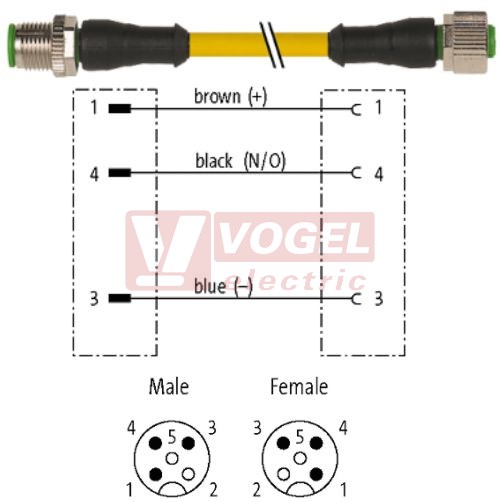 Odkazy 7000-40001-0130060 konektor M12/3-pin/vidl/přímý - kabel ŽL PVC 3x0,34m2 L=0,6m - konektor M12/3-pin/zás/přímý