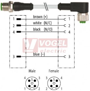 Odkazy 7000-40121-8622000 konektor M12/4-pin/vidl/přímý - kabel ŠE PUR do vlečného řetězu 4x0,75mm2 L=20,0m - konektor M12/4-pin/zás/úhlový