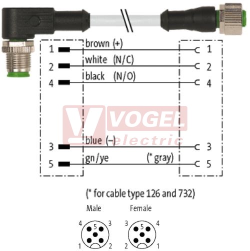 Parametry 7000-40221-2250200 konektor M12/5-pin/vidl/úhlový - kabel ŠE PUR/PVC 5x0,34mm2 L=2,0m - konektor M12/5-pin/zás/přímý