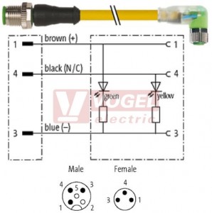 Odkazy 7000-40641-0300150 konektor M12/3-pin/vidl/přímý - kabel ŽL PUR do vlečného řetězu 3x0,25mm2 L=1,5m - konektor M8/3-pin/2xLED/zás/úhlový