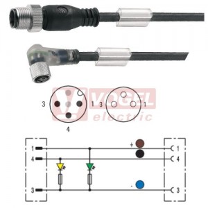7000-40641-0300200 konektor M12/3-pin/vidl/přímý - kabel ŽL PUR do vlečného řetězu 3x0,25mm2 L=2,0m - konektor M8/3-pin/2xLED/zás/úhlový