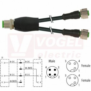 7000-40701-6330200 rozbočovací Y konektor M12/4-pin/vidl/přímý - kabel ČE PUR do energ. řetězů 3x0,34mm2 L=2m - 2x konektor M12/3-pin/zás/přímý
