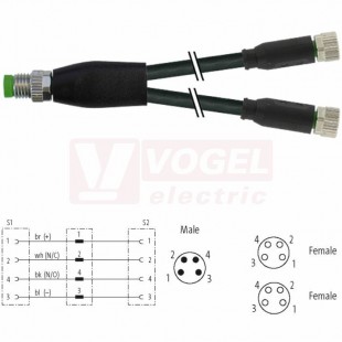 Odkazy 7000-87061-6310030 rozbočovací Y konektor M8/4-pin/vidl/přímý - kabel ČE PUR 4x0,25mm2 L=0,3m - 2x konektor M8/4-pin/zás/přímý