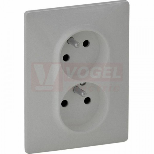 753386 Valena Life zásuvka 2x 2P+PE 16A/250V, hliník, horní zásuvka pootočená o 30°, bezšroubové svorky, IP20