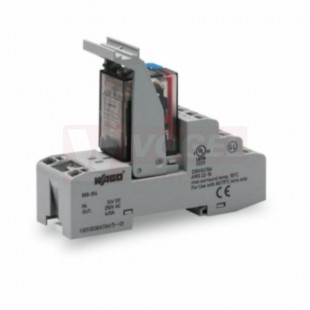 858-304 relé 24VDC 4P přepínací 5A/250VAC, LED červená, s ručním ovládáním, š=31mm WAGO