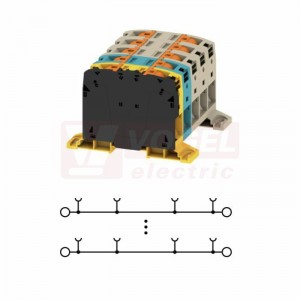 | A2C 50/70 FE-DM svorka řadová, průchozí, PUSH-IN, 50mm2, 1/1 černo-žlutá, 150A/1000V, přímá montáž na DIN lištu TS35 (2663350000) |