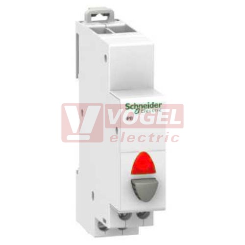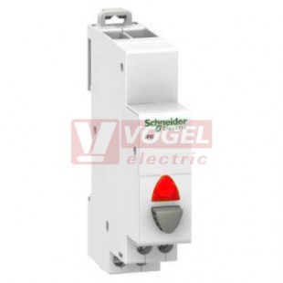 A9E18039 Tlačítko IBP šedé, 1VYP 20A 250V+ signálka LED ČERV 12-48V AC/DC, š=18mm