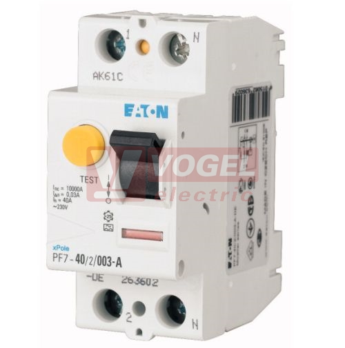| Chránič 1P+N 100A 300mA, typ A, (PF7-100/2/03-A) 10kA, pro AC rezid. proudy a pulsující DC rezid.proudy (166823) Eaton |