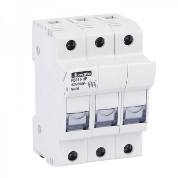 FB01F3P Pojistkový odpojovač 3P pro válc.poj. vel. 10x38mm do 32A, certifikace UL, š=3x18mm