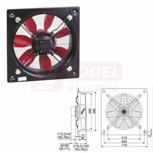 HCFT/4-560-H 230/400V ventilátor axiální 1,21kW/400V, otáčky 1390/1min, výkon 1051W, max.teplota 70°C (SP153100212)