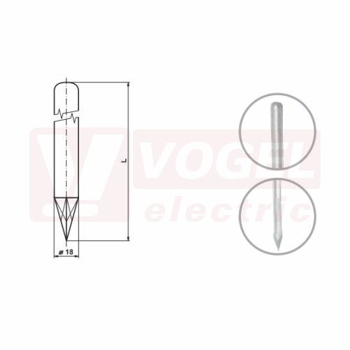 Parametry JK 1,0 N jímací tyč s kovaným hrotem nerez, vyčnívající nad chráněným objektem, délka 1000mm (VN2415)