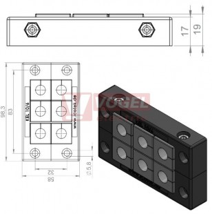 Parametry KEL 10/6 průchodkový rámeček, černý, IP54, 6x malá vložka (vložky se objednávají samostatně) (42216)