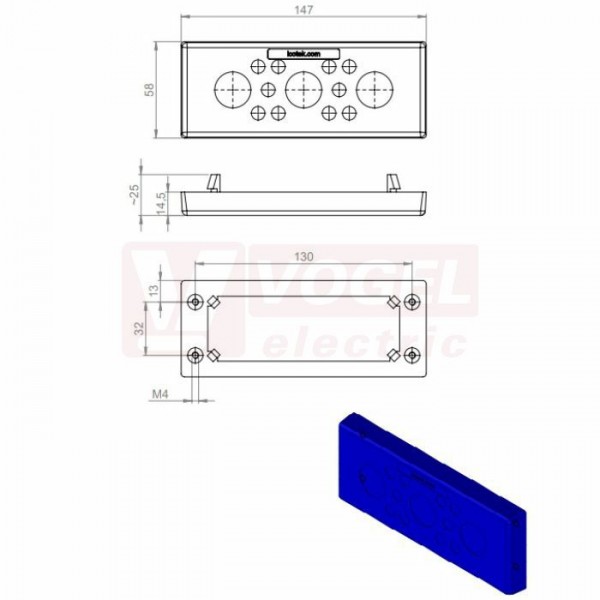 Parametry KEL-DPU-HD 24/13 membránová průchodka, modrá, zvýšená ochrana proti namáhání kabelů v tahu, nacvakávací, 147x58x14mm, výřez 112x36mm, tloušťka plechu 1,5-2mm, pr.kabelů 10x3,2-6,3mm, 3x 16-20,5mm, IP66/68 (73940)