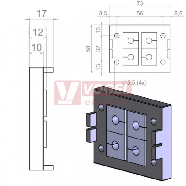 Parametry KEL-QUICK-B4 průchodkový rámeček, černý, IP54, 2x malá vložka (vložky se objednávají samostatně) (42434)