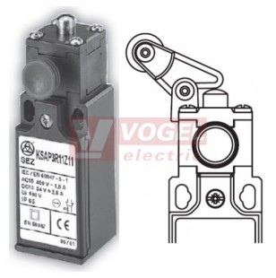 KSAP3R32Z02 Koncový spínač s resetem, ocelový čep s nylónovou kladkou, 2V, s mžikovou funkcí, kabel.vstup 1xPG11, IP65