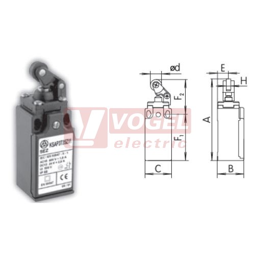 Parametry KSAP3T35Z11 Koncový spínač s pákou a plastovou kladkou pr. 12,5mm, s kov.čepem a prachotěsnou manžetou,1Z+1V, s mžikovou funkcí, kabel.vstup 1x PG11, 92x30x30,3mm, IP65