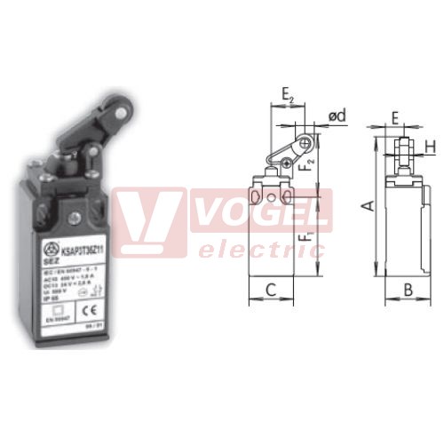 KSAP3T36X11 Koncový spínač s pákou a plastovou kladkou pr. 12,5mm, s kov.čepem a prachotěsnou manžetou, 1Z+1V, bez mžikové funkce, bez přesahu, kabel.vstup 1x PG11, 92x30x30,3mm, IP65