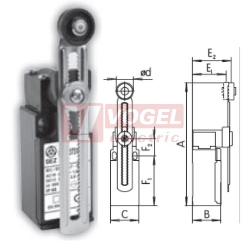 KSAP3T5100Z11 Koncový spínač s nastavitelnou ozubenou pákou a nylónovou kladkou pr.18mm, 1Z+1V, s mžikovou funkcí, kabel.vstup 1xPG11, 98,5-170,5x30x30,3mm, IP65