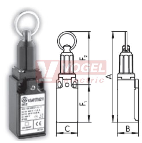 KSAP3T98Z11 Koncový spínač ovládaný tahem, očko, 1Z+1V, s mžikovou funkcí, kabel.vstup 1xPG11, 127x30x30,3mm, IP65