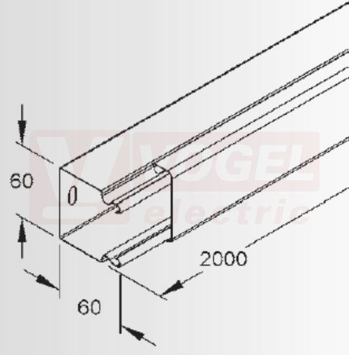 Parametry LLK 60.060 kanál s víkem, 60x60x2000mm, ocel, pozink, s děrováním dna (NIEDAX)