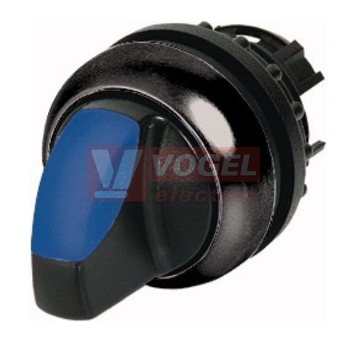 M22S-WLK3-B Ovládací hlavice přepínače, prosvětlená, 3 polohové, bez aretace, kroužek černý, 40st, modrá (216842)