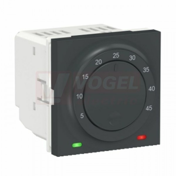 NU350354 Unica termostat podlahový otočný 2M, 230V/50Hz, rozsah 5-45°C, šroubové svorky, Antracit RAL7021, v=45mm, š=45mm, hl=47mm, IP20, IK01