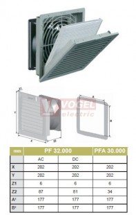 Parametry PF 32.000 IP54 230VAC, RAL7035, UL (7700005586) otvor 177x177mm, ventilátor s filtr.vložkou 82m3/h