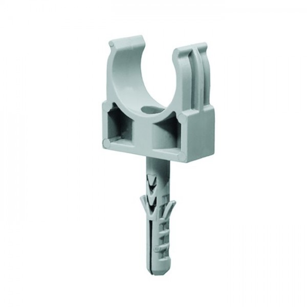 Příchytka PLAST 16 CT16, s polyamidovou hmoždinkou a pozinkovaným ocelovým samořezným šroubem, průměr hmoždinky 6mm, s halogenem, UV nestabilní, šedá RAL7035, PVC (CT16)