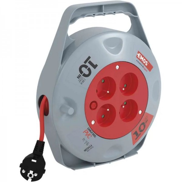 Prodluž.bubnový 10m/4Z EMOS PVC H05VV-F 3G1,0mm2, IP20, RU, 230V/10A, 960W navinutý/2300W rozvinutý, tep.pojistka, zásuvky CZ kolík (P19410N)