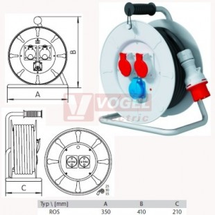 | Prodluž.bubnový 25m/2x(5P/16A/400V IEN) PB 2E5/25m, IP44, kabel CGSG 5Cx2,5 |