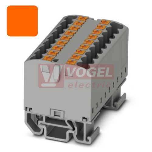 PTFIX 12X2,5-NS15A OG blok rozbočovací/distribuční, připojení PUSH-IN, 500V/24A, oranžová, š=15,6mm, podélná montáž na DIN lištu TS15 (3274140)