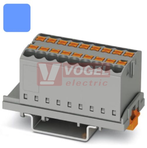 PTFIX 12X2,5-NS35 BU blok rozbočovací/distribuční, připojení PUSH-IN, 500V/24A, modrá, š=28,6mm, příčná montáž na DIN lištu TS35 (3273024)