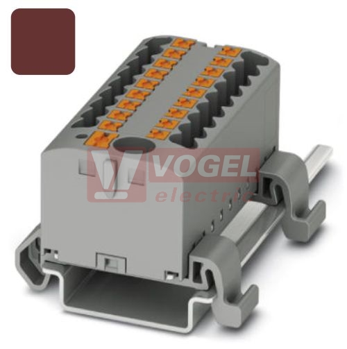 PTFIX 6/12X2,5-NS35A BN blok rozbočovací/distribuční, s napájením, připojení PUSH-IN, 500V/24A, hnědá, š=25,2mm, podélná montáž na DIN lištu TS35 (3273230)