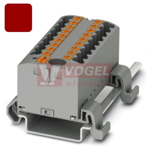 PTFIX 6/6X2,5-NS35A RD blok rozbočovací/distribuční, s napájením, připojení PUSH-IN, 500V/24A, rudá, š=25,2mm, podélná montáž na DIN lištu TS35 (3273202)
