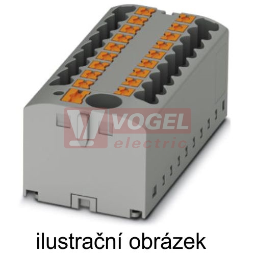 PTFIX 6X2,5-G OG blok rozbočovací/distribuční, připojení PUSH-IN, 500V/24A, oranžová, š=15,6mm, montáž lepením (3273412)