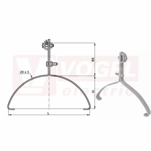 Parametry PV 15b Cupodpěra vedení na hřebenáče Cu, š=250-270mm, v=100mm, upevnění vodiče na hřebenu střechy (např. Beta, Bramac a PV 15c pro starší typ Bobrovky) (V795)