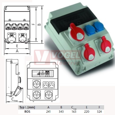 ROS 11/FI-12 zásuvková rozvodnice 2xIE 3253+1xIE1653+2x230V/16A- jištěná+chránič