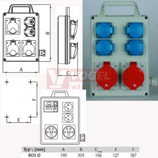 ROS-I 3201 D zásuvková rozvodnice 2 x IE 3253 + 2x230V/16A, s držadlem, IP44