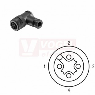 SAIBWS-K-4A-4/6-M12 (st.zn. SAIBW-4/7-(KV) konektor M12/4pin/zás/úhlový, plast.tělo, šroubové připojení, A-kódovaní, pro montáž 0,14-0,75mm2, sevření 4-6mm, IP67